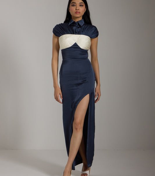 Midnight Pleated Satin Gown